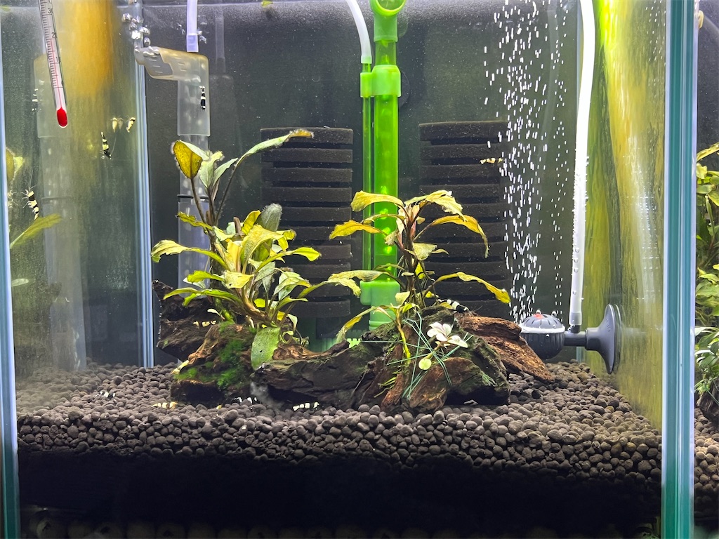グリーンウォーターの改善ならアマゾンフロッグピット等の浮草や、浄化作用の高い水草を入れると良いでしょう。