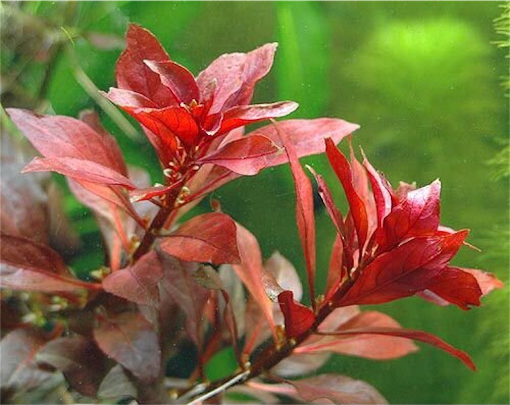 ワインレッド系の深い赤に染まる赤系の水草です。
