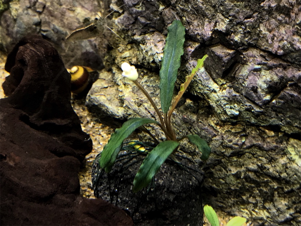 また小さな溶岩石に活着させれば移動も容易になり色々なレイアウトの幅も広がりますし、大きな流木等に複数株を活着させれば迫力ある群生も可能です。